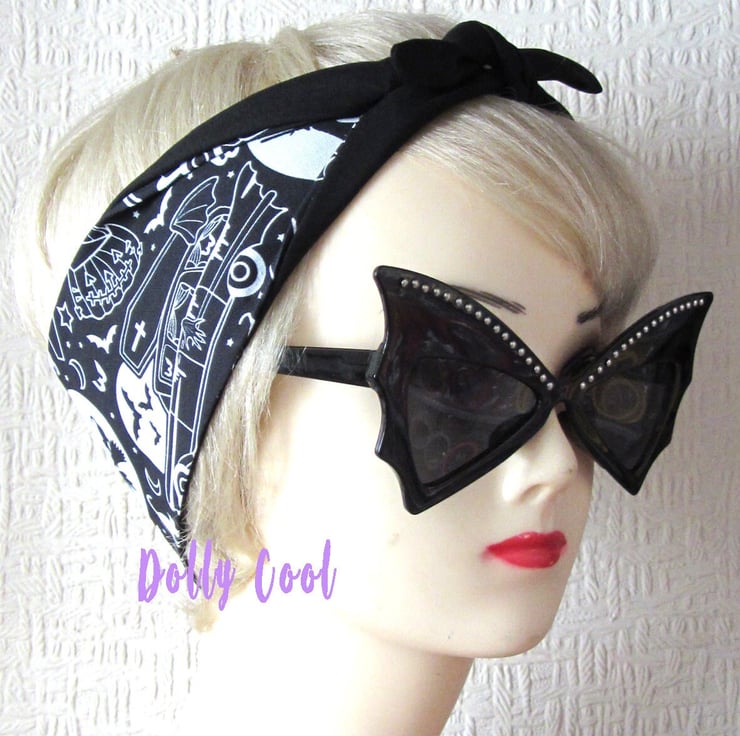Haunted Hearse Hair Tie Head Scarf Wrap by Dolly Cool - Halloween - Witch -