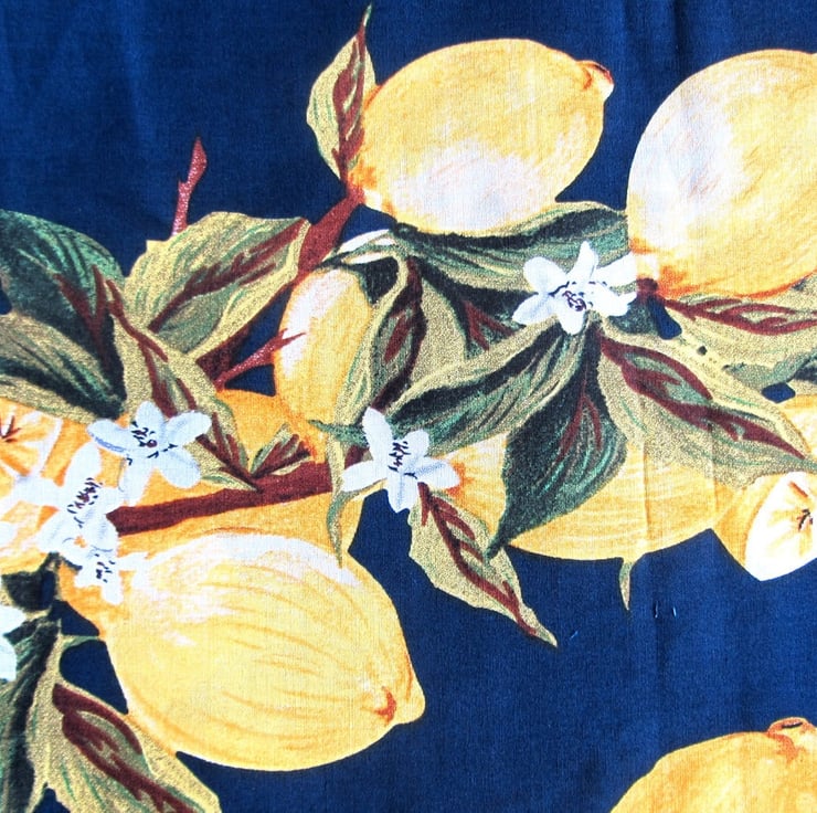 Cotton patterned fabric with all over Lemon Fruit print on Navy