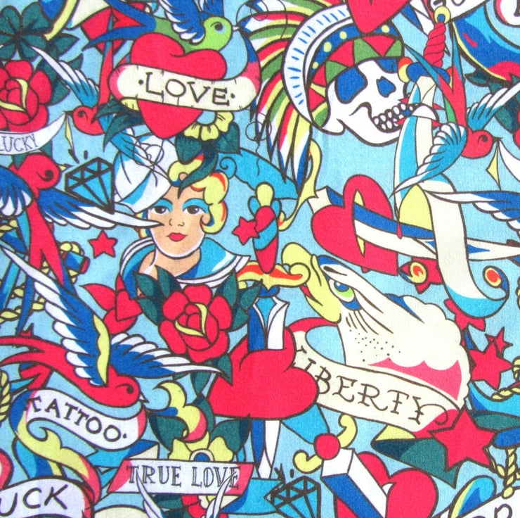 Cotton patterned fabric with all over Swallow Tattoo print