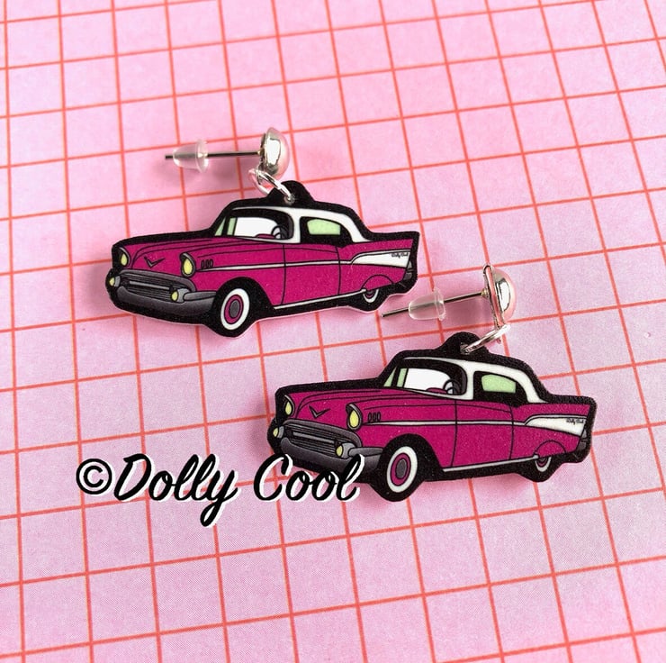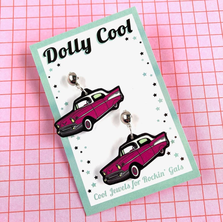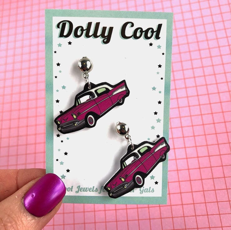 50s Pink Chevy Bel Air Car Earrings by Dolly Cool - Rockabilly - 50s Car - VLV - Cadillac