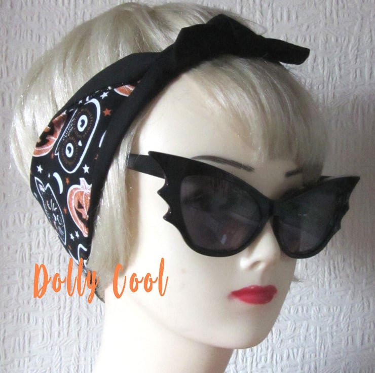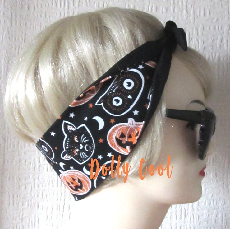Halloween Hair Tie by Dolly Cool - Owl - Cat - Pumpkin Fabric with Moon and Stars