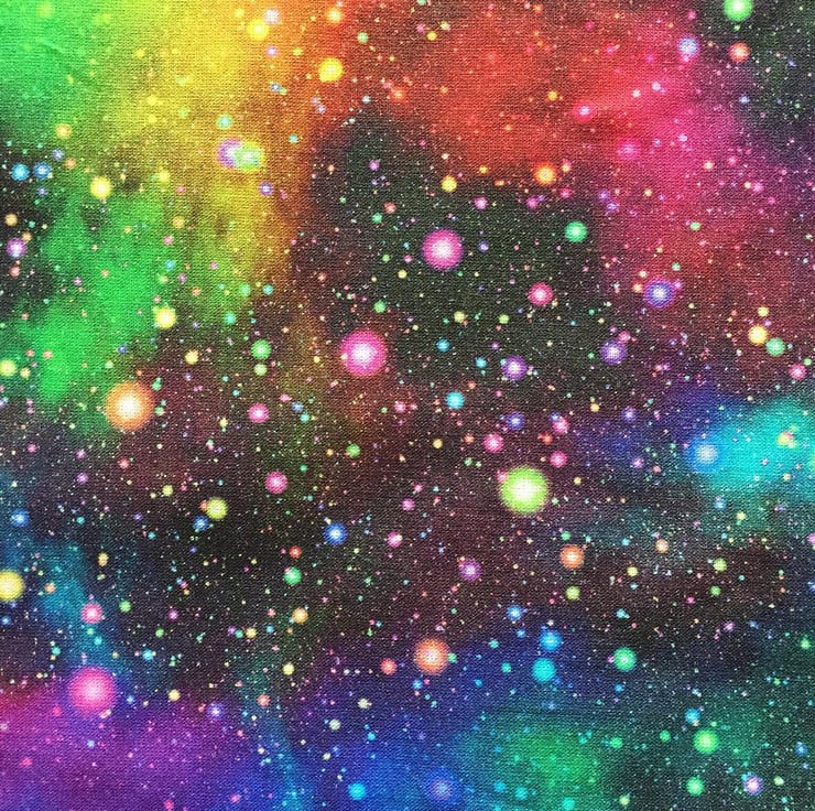 Cotton patterned fabric with all over Rainbow Galaxy print