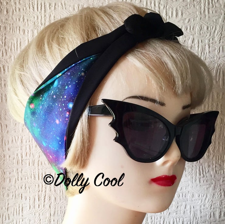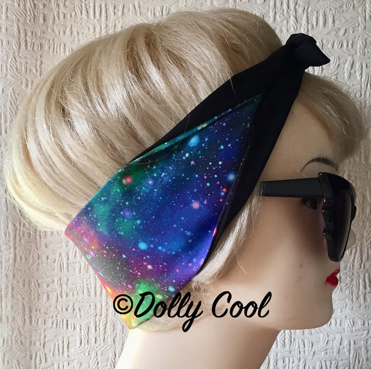 Rainbow Galaxy Hair Tie Rockabilly Head Scarf by Dolly Cool - Space - Astrology - Moon - Milky Way - Cosmic
