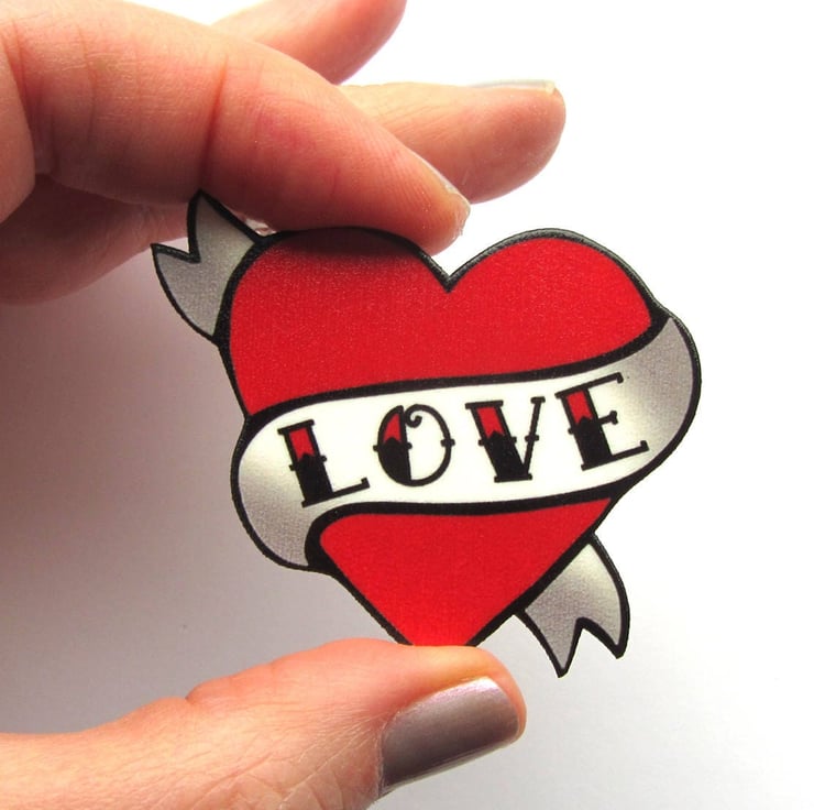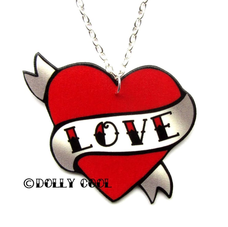 Love Heart Necklace Tattoo Style by Dolly Cool Rockabilly 50s