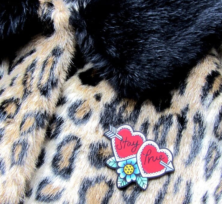 Inspired by the Novelty Pins of the 40s and 50s, this 'Stay True' brooch is made from one of my original illustrations, and has been professionally printed onto Maple plywood with a matte finish.