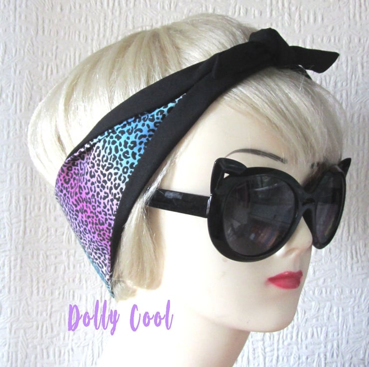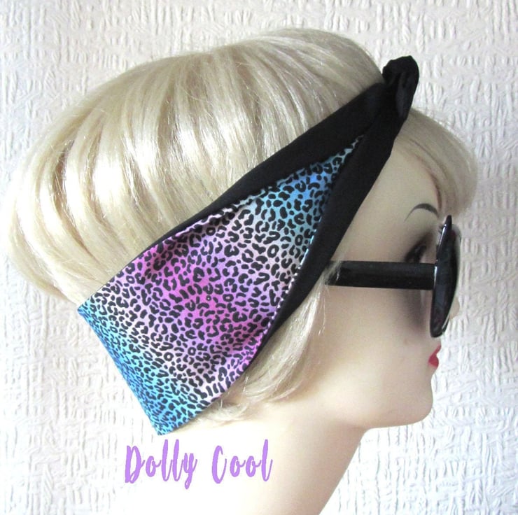 Leopard Print Hair Tie Rainbow - Rockabilly Scarf - Head Wrap - Hair Band - Bandana - by Dolly Cool