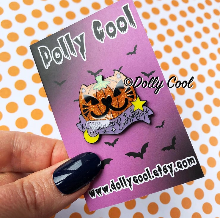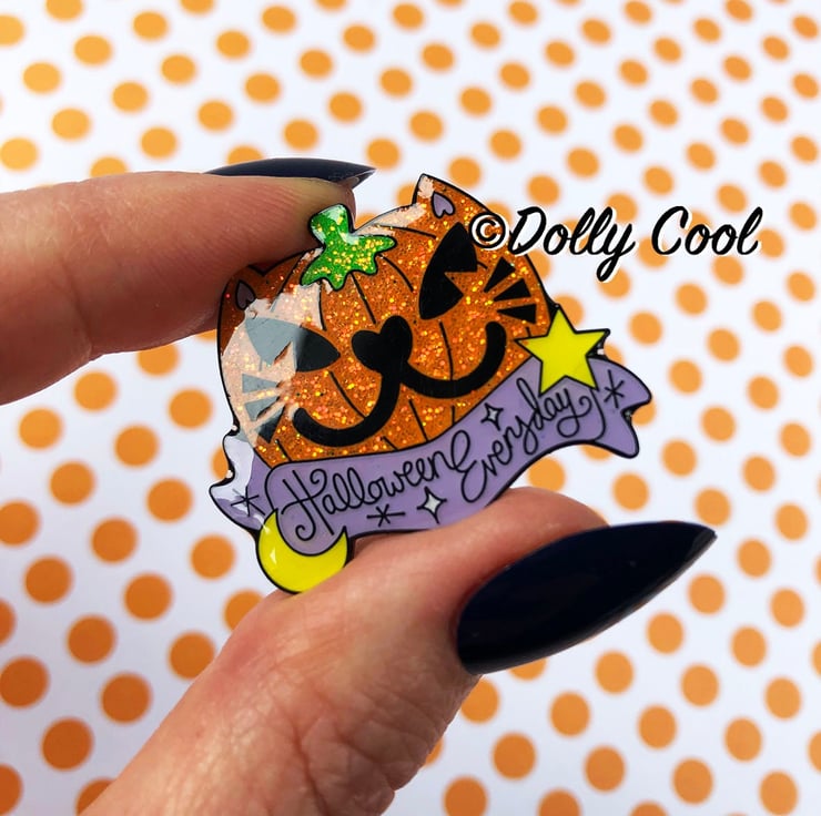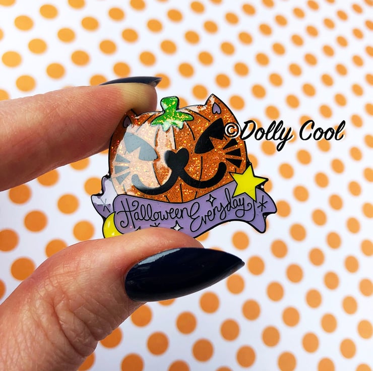 Cat Pumpkin Enamel Pin by Dolly Cool - Halloween Everyday - Creepy Cute Pin Badge - Glitter