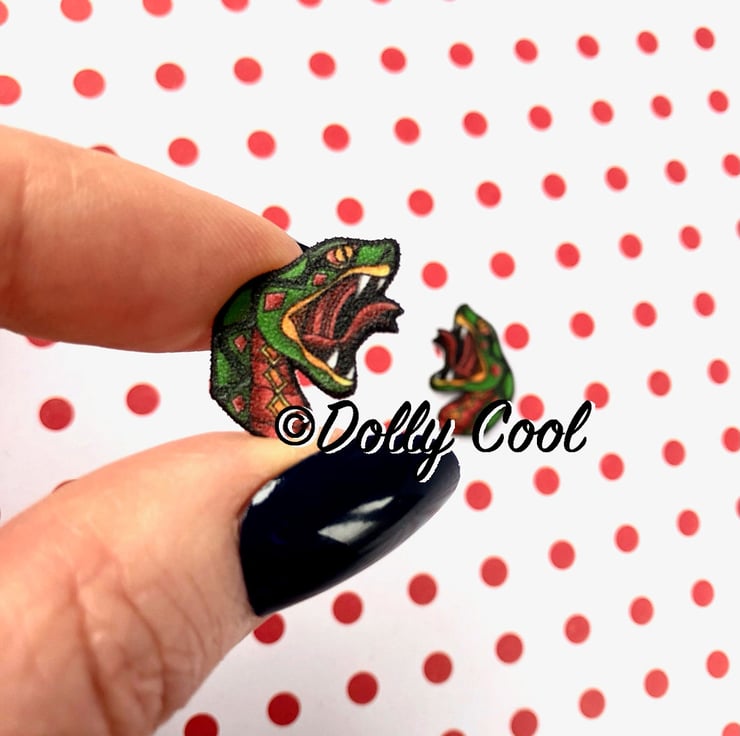 Snake Head Tattoo Flash style Earrings - Old School - Rockabilly - by Dolly Cool