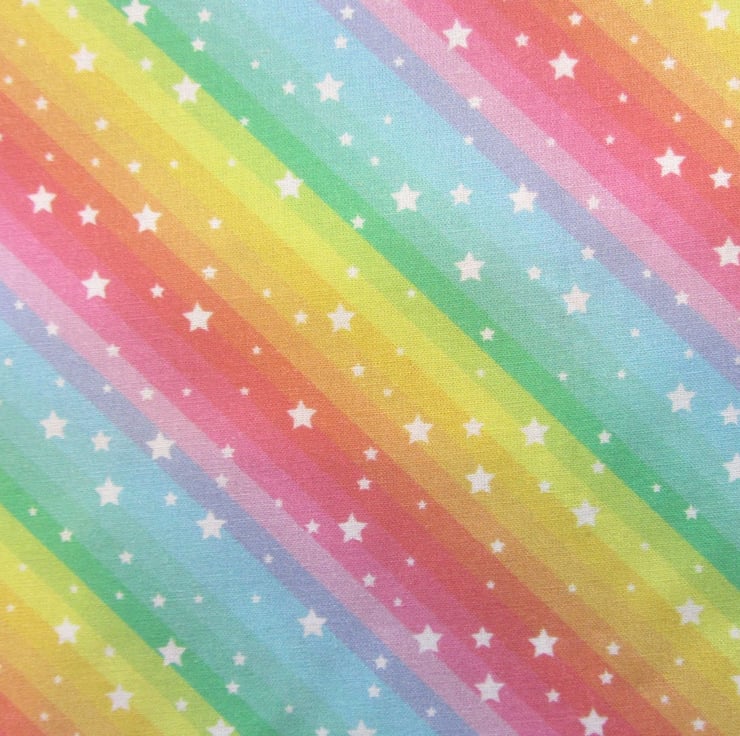 Cotton patterned fabric with all over Rainbow stripe with stars print