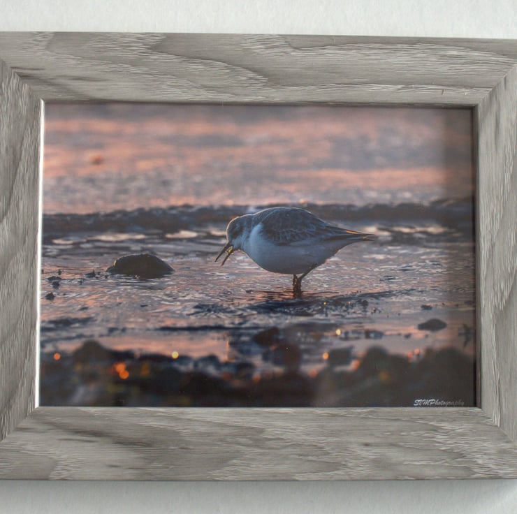 Original Framed Photo of a Sanderling Feeding