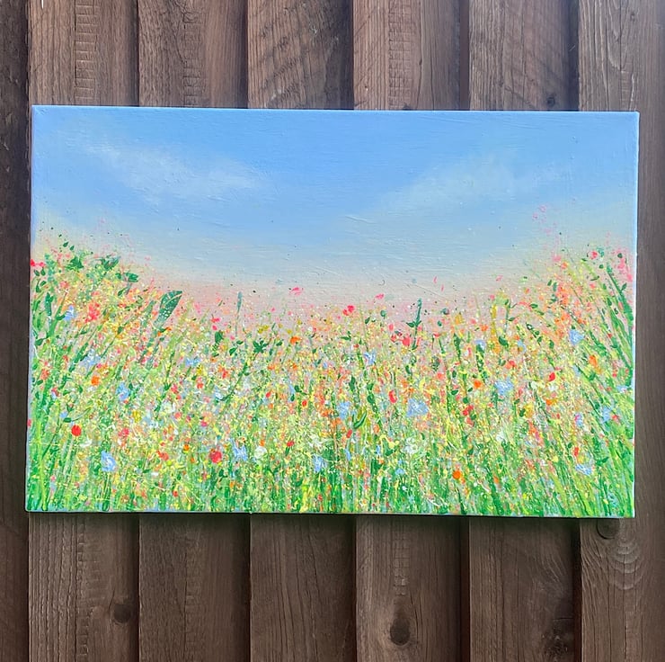 Spring meadow, painted on a 45cm x 30cm stretched canvas using high quality acrylic paint