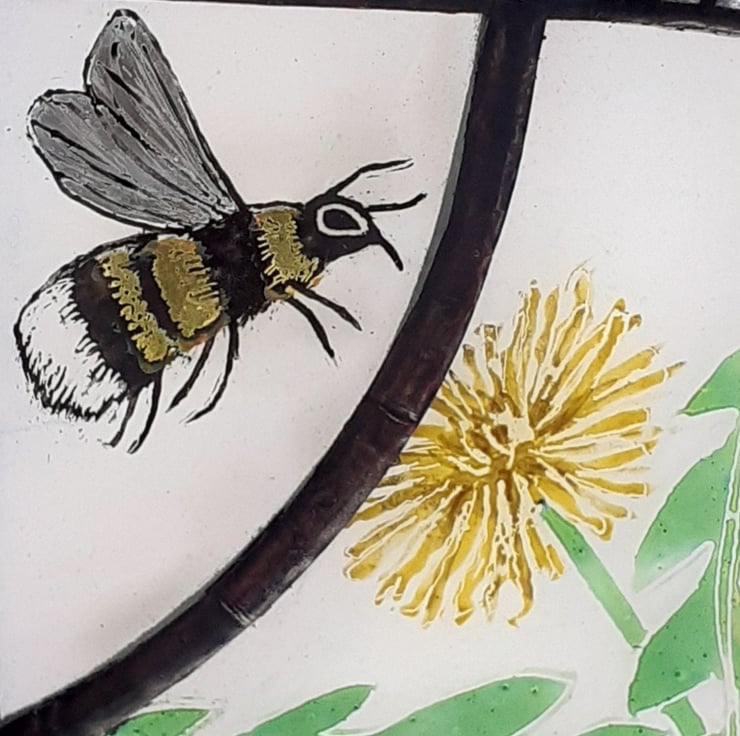 Ideas for designs are dictated by the shape of the glass, plants & insects especially bees are prominent in my work.
