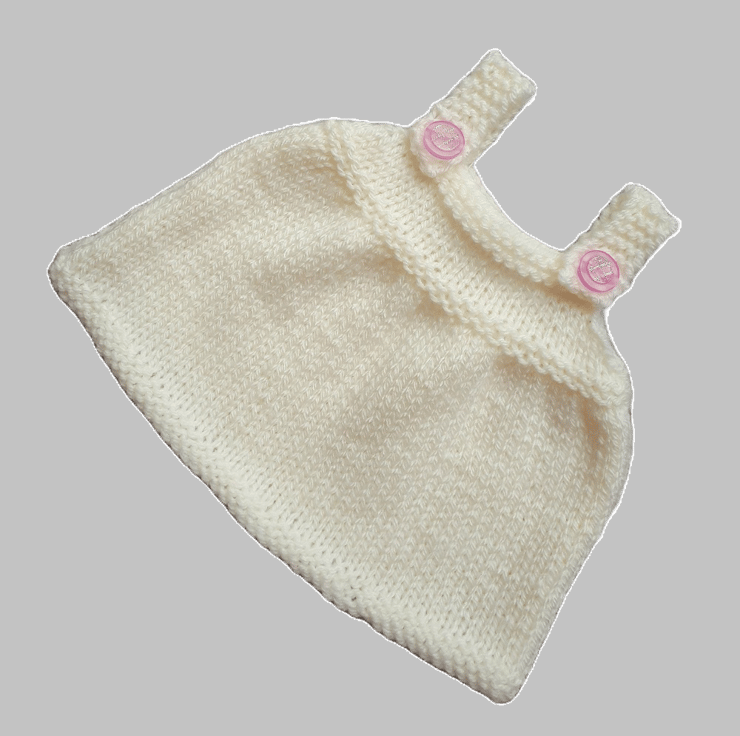 This hand knit PATTERN is for a dress for a Doll. To fit doll Height 46 cm or 18 inches. The dress is knitted in double knitting yarn using 3.25 mm and 4 mm knitting needles and is knit flat and seamed.