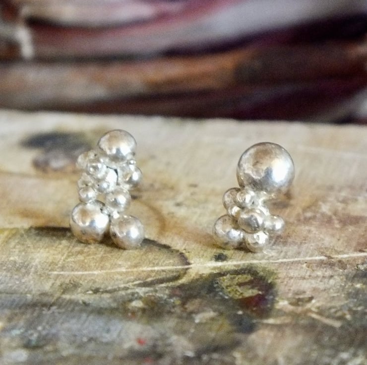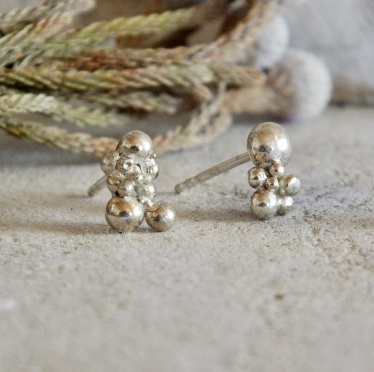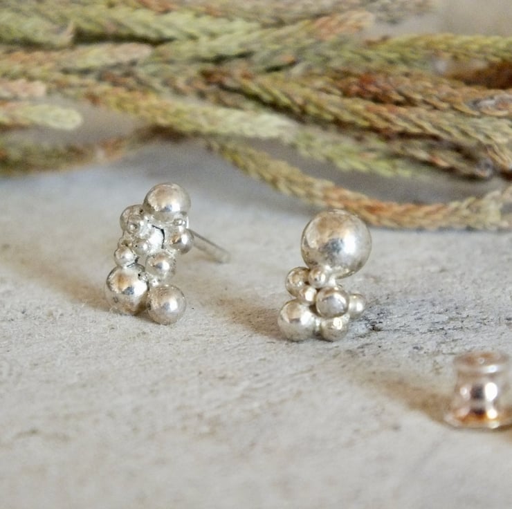 A refined, tactile piece that brings understated sophistication to your daily look. These studs are crafted from recycled sterling silver, transformed into tiny granules and soldered together to create an organic textured surface.