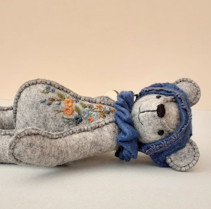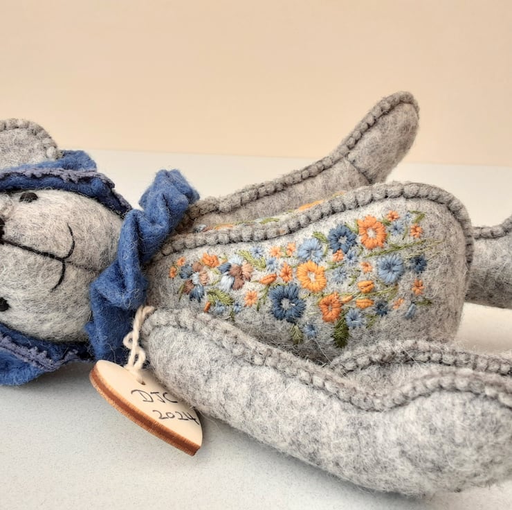 Completely hand sewn from premium 2/3mm 100% wool felt in light smokey grey.