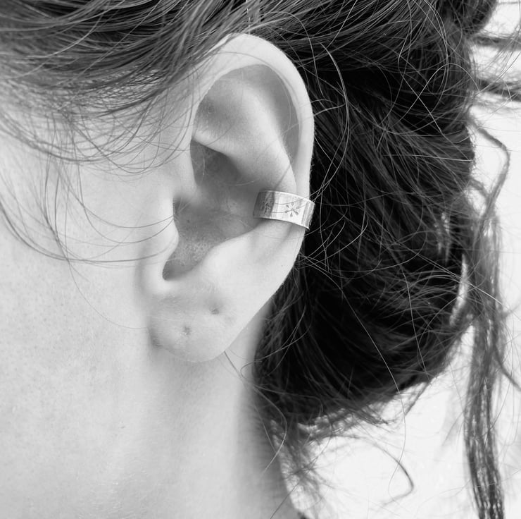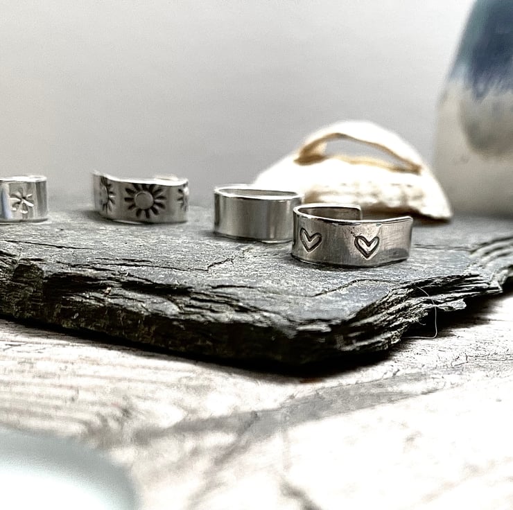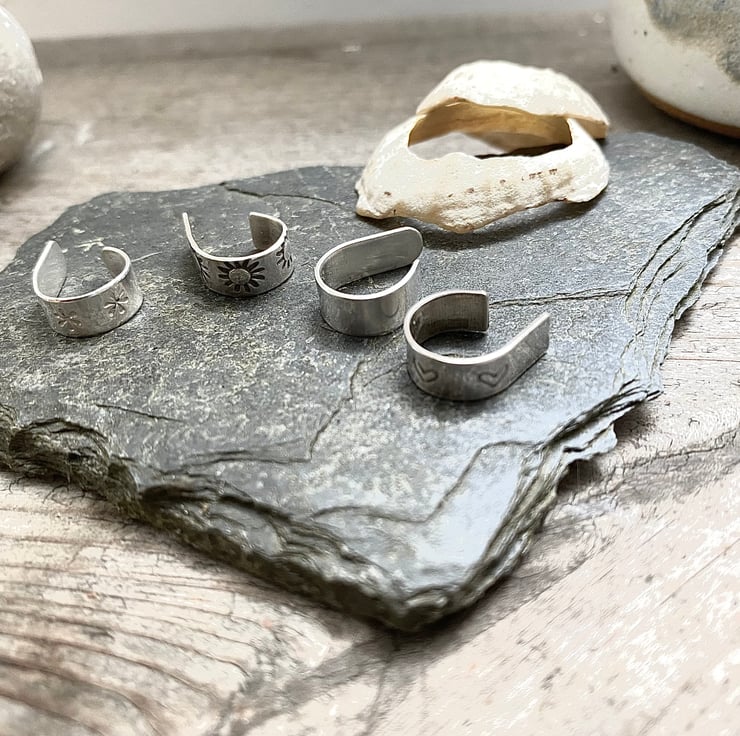 These sterling silver ear cuffs simply slide onto the ear, so no piercing required! Hand stamped with either flowers, sun or heart, or a plain polished option is available (please state which design you’d like in the comments box at point of purchase).