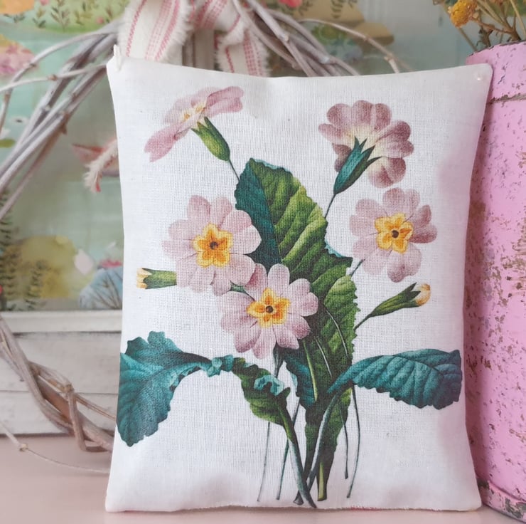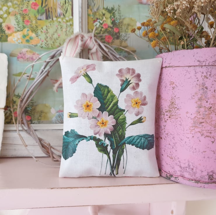 This lovely primrose illustration has been hand printed onto fabric and I've made it into a scented gift pillow decoration. Each pillow is printed and made to order. You can choose to have it scented with lavender or rose petals.