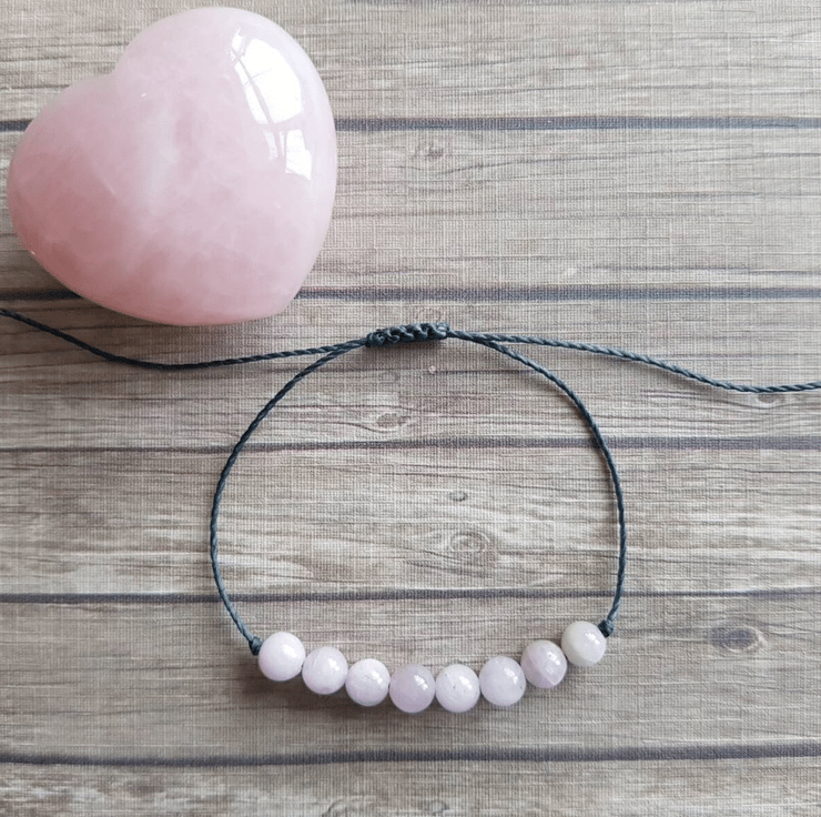 waxed Brazilian cord - Kunzite round beads 6mm - Clear Quartz beads (4mm) - sliding knot closure