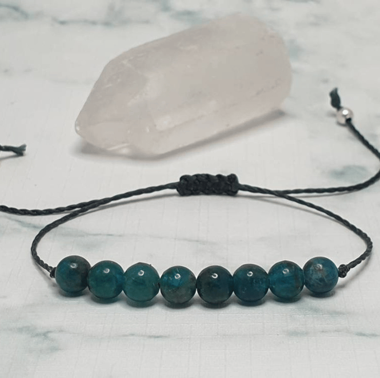 waxed Brazilian cord - Apatite round beads 6mm - Clear Quartz beads (4mm) - sliding knot closure