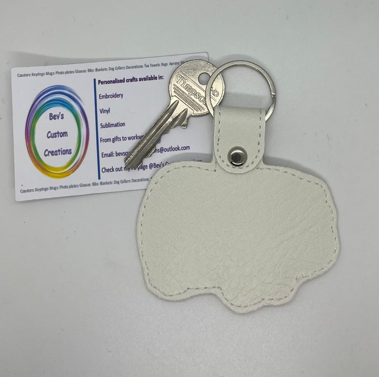 Marine vinyl makes the keyring shower proof. The design is on the front only and the back is plain.