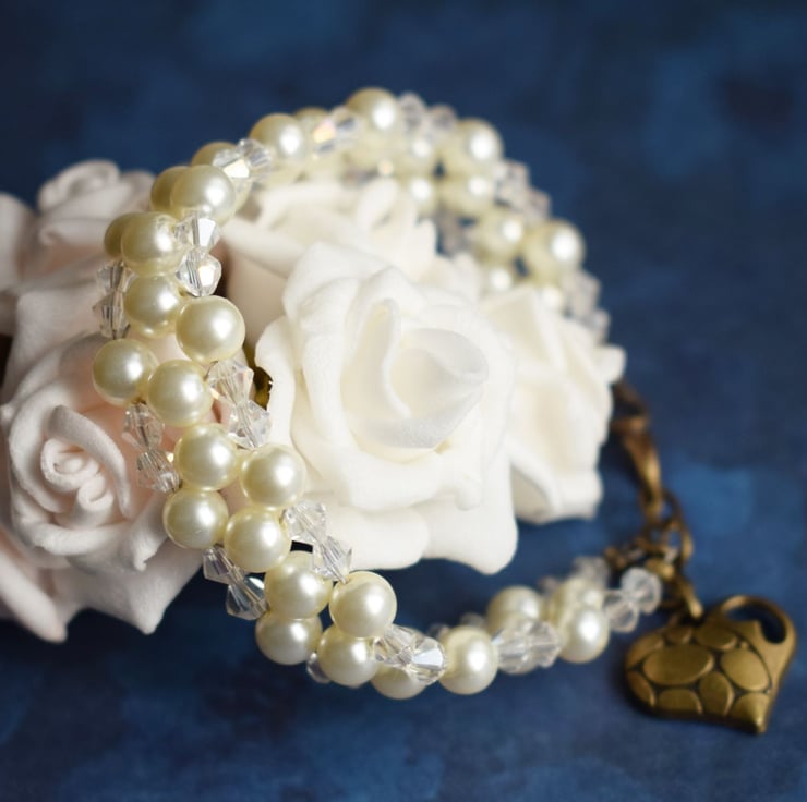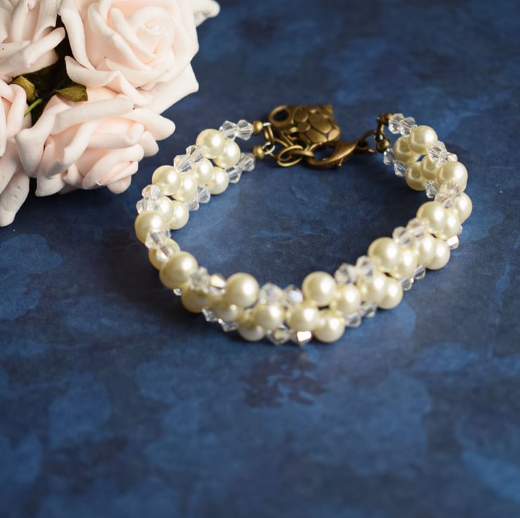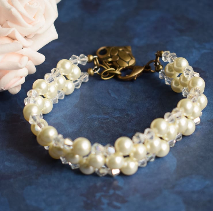 This lovely bracelet made with ivory glass pearls and tiny faceted glass beads would be a perfect finish to your bridal outfit either as the bride or as the mother of the bride!