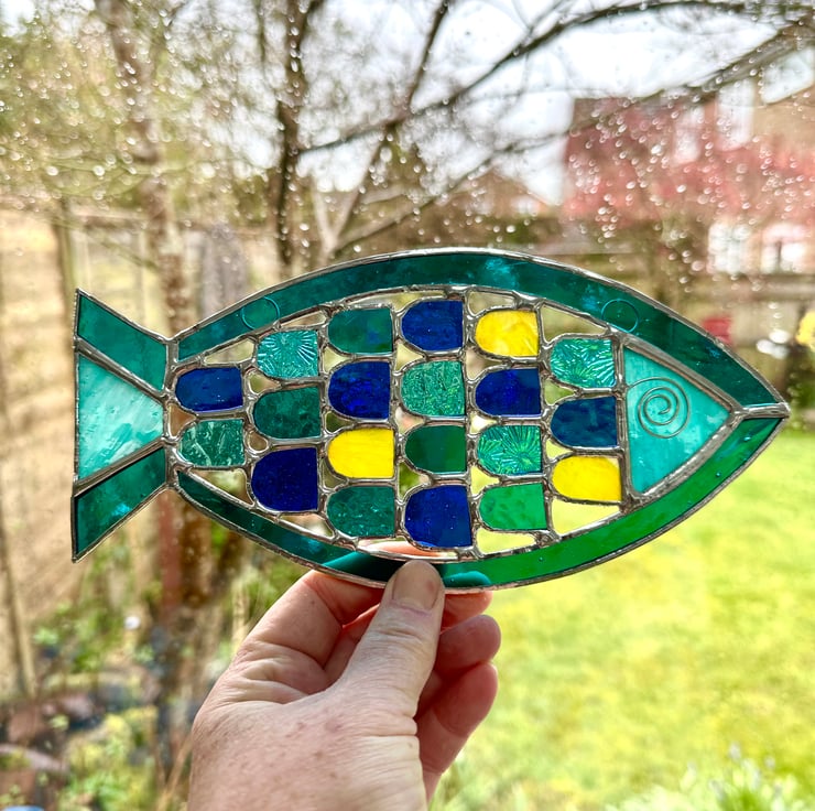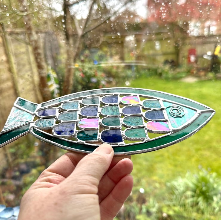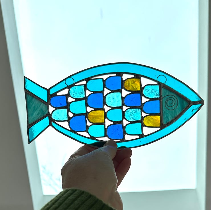I had seen a post on line of a fish suncatcher which inspired me to doodle and make this.