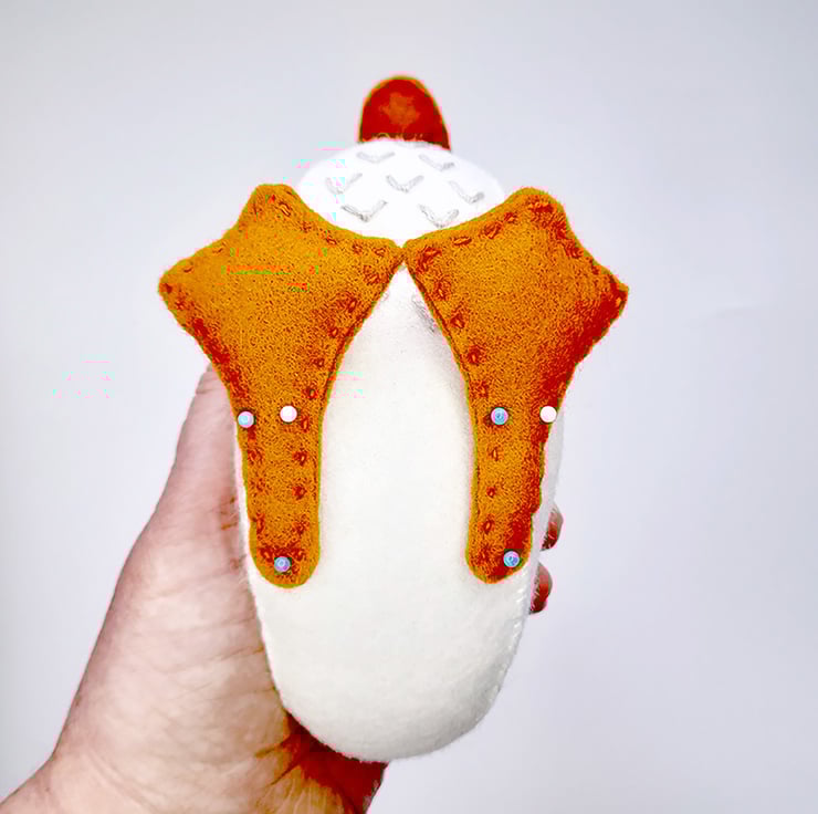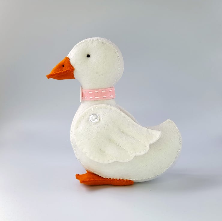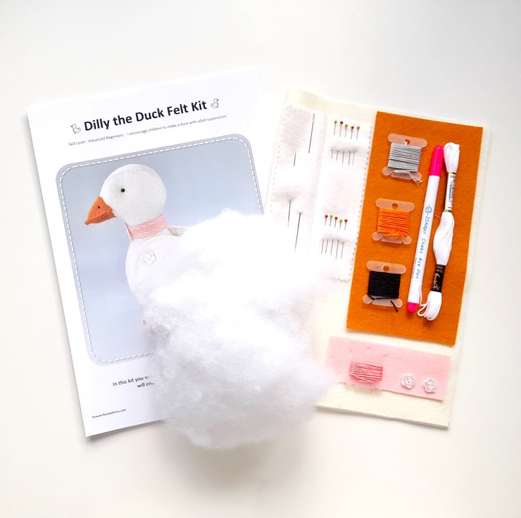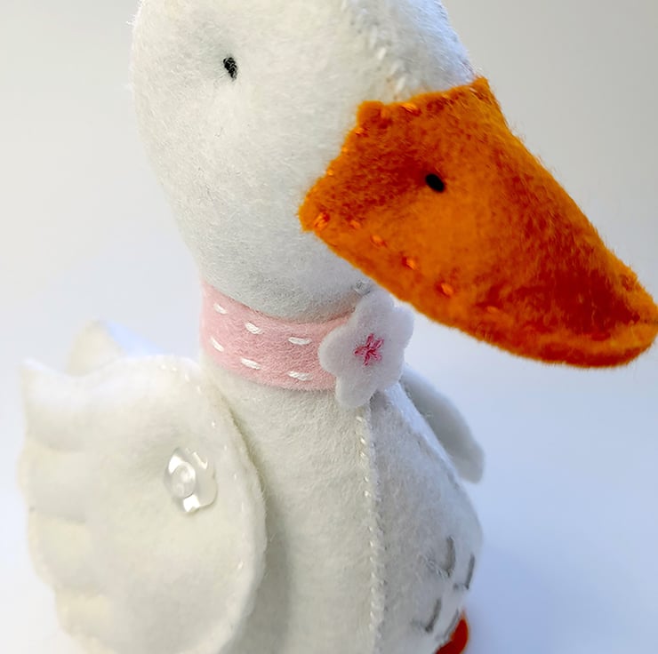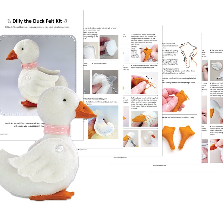 Within the kit there is a instructions are a step-by-step guide through the making process of making a cute little Duck. They take you from cutting out your paper pattern pieces to adding embroidery details onto the duck’s body. There are simple straightforward text instructions which are accompanied by full colour photographs at every step.