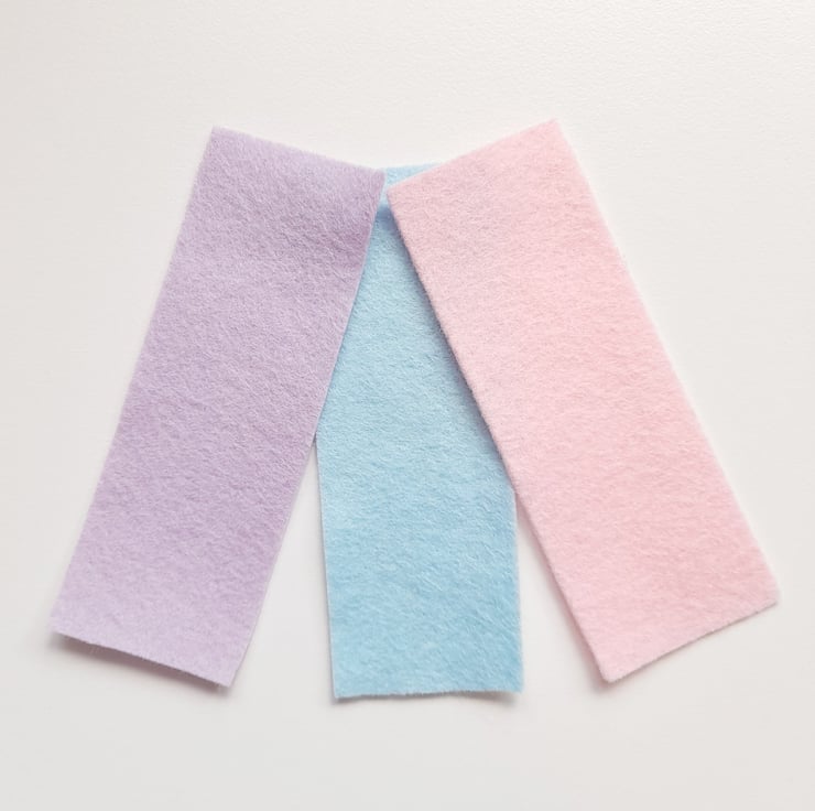 - 1 Piece of 1mm Pale Pink or Baby Blue or Lilac wool felt, 110mm x 40mm.