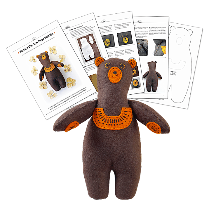 This cute felt Sun Bear which stands 26cm (10 ins) high.