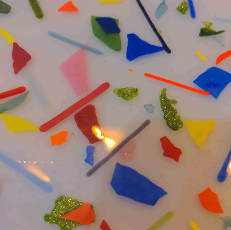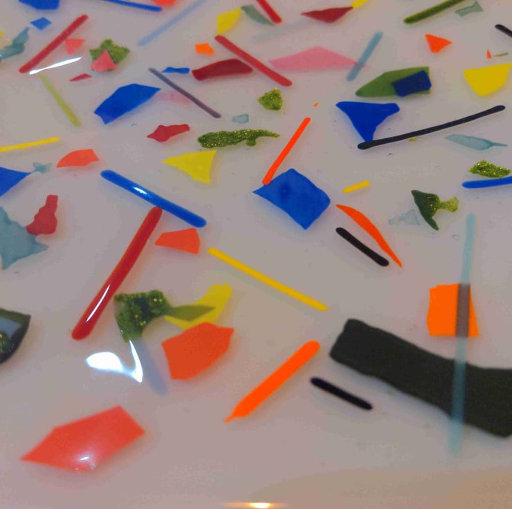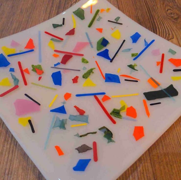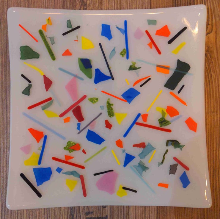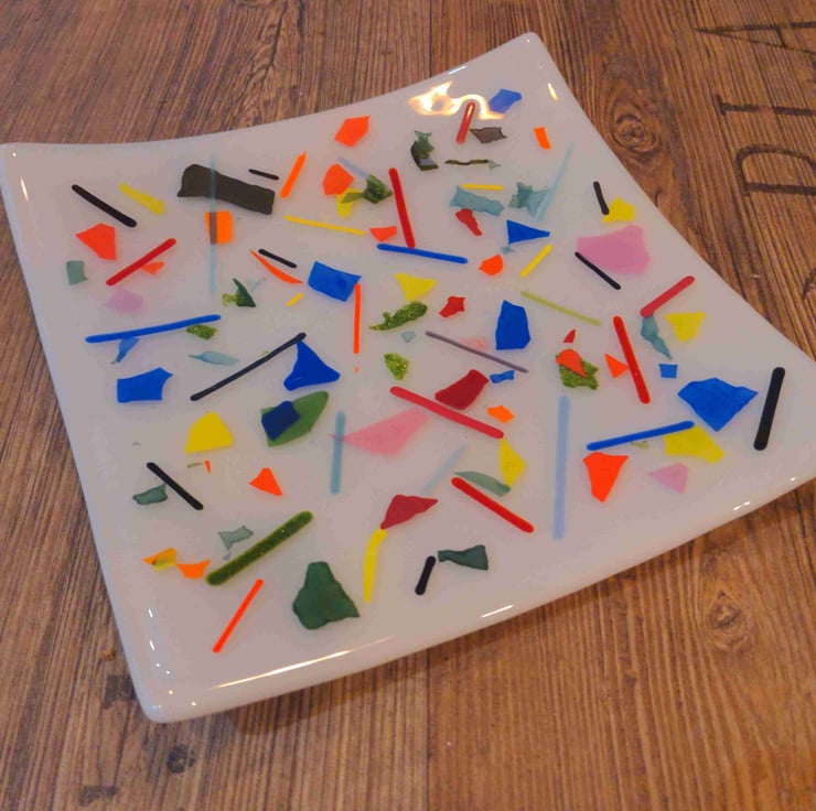 Fused Glass Plate 20cm square Multicoloured confetti & white