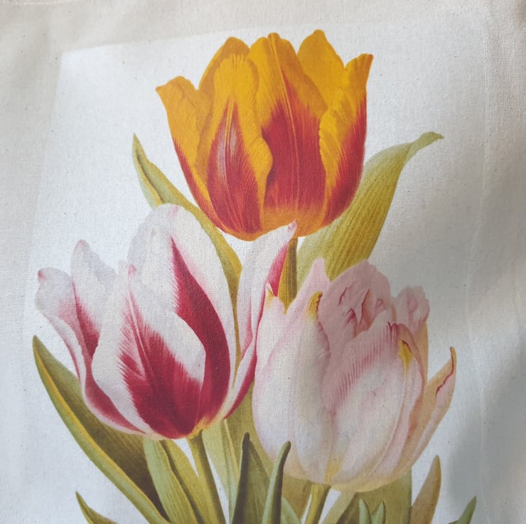 This lovely Tulip illustration has been hand printed onto a cotton tote so perfect for Spring and a great gift for tulip fans and anyone who loves their garden.