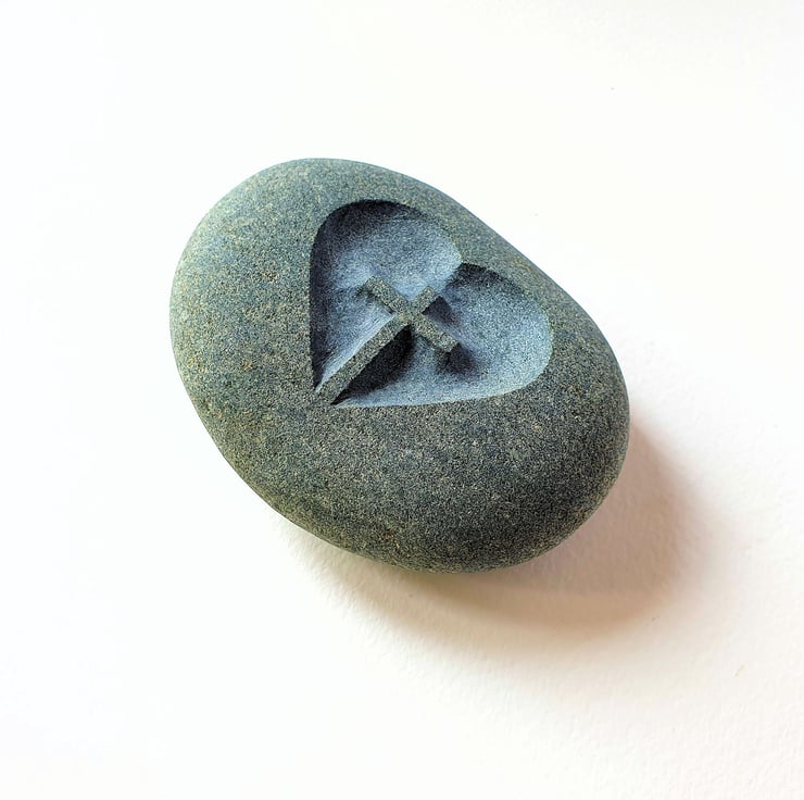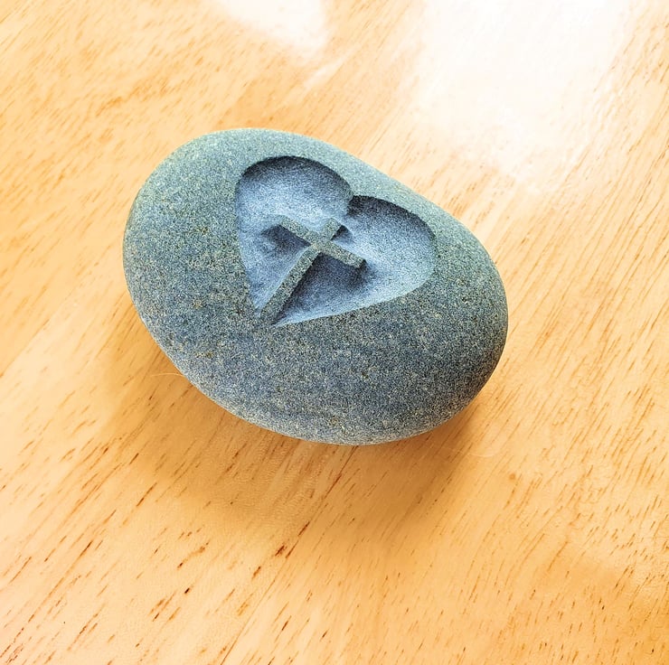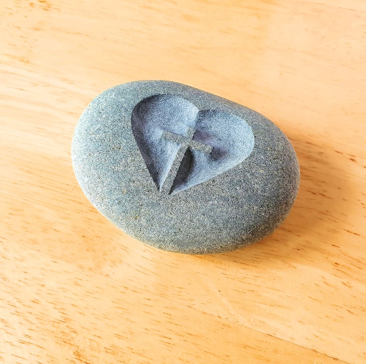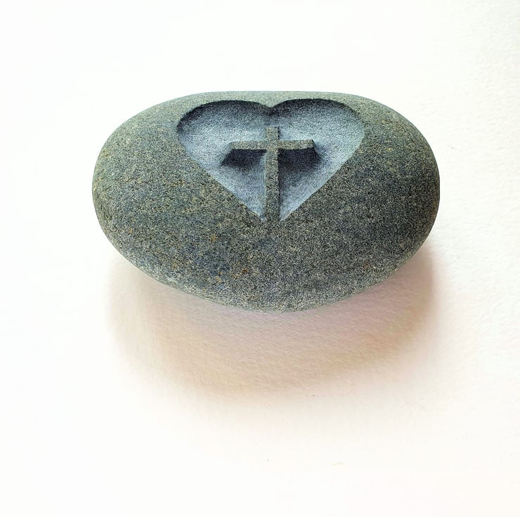 I wanted to symbolise the link between religion and love, with the cross central to a large heart. These stones are a lovely size, perfect for the palm of your hand and they sit comfortably in your pocket.