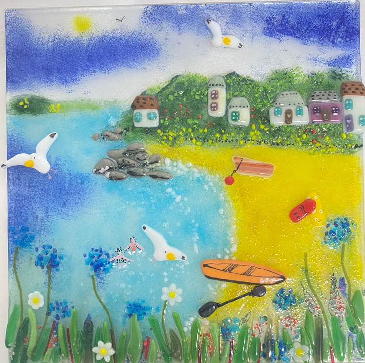 Fused glass landscape beach art- gyllenvase (made to order)