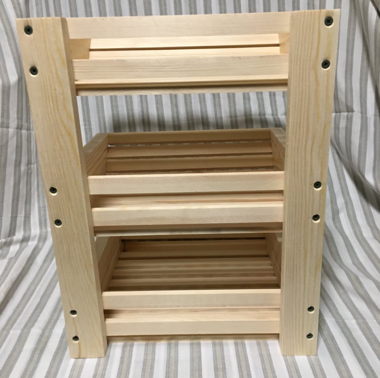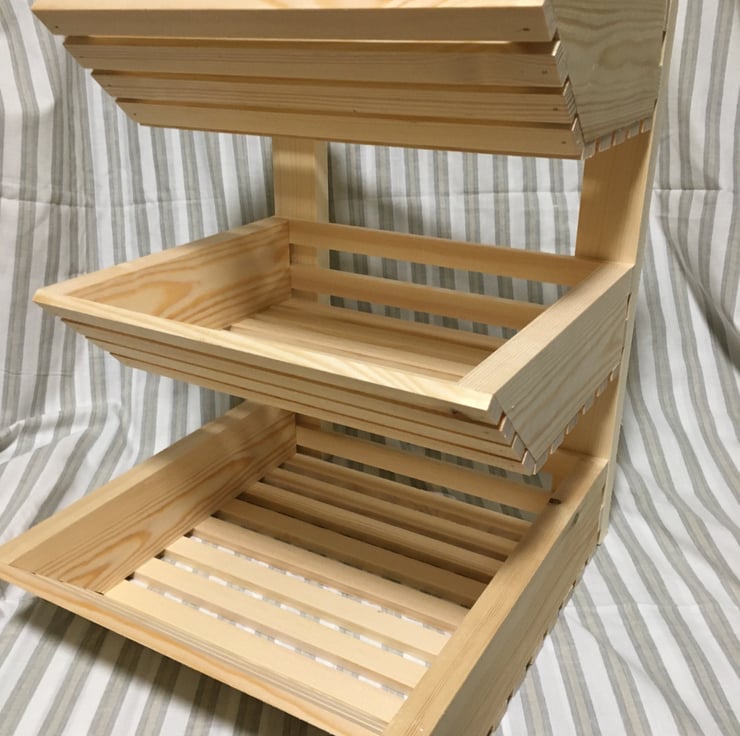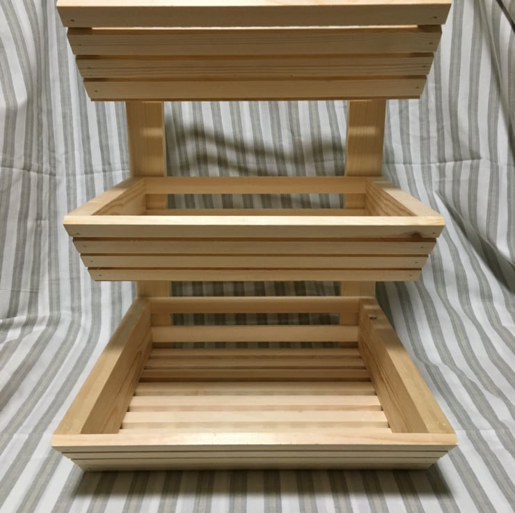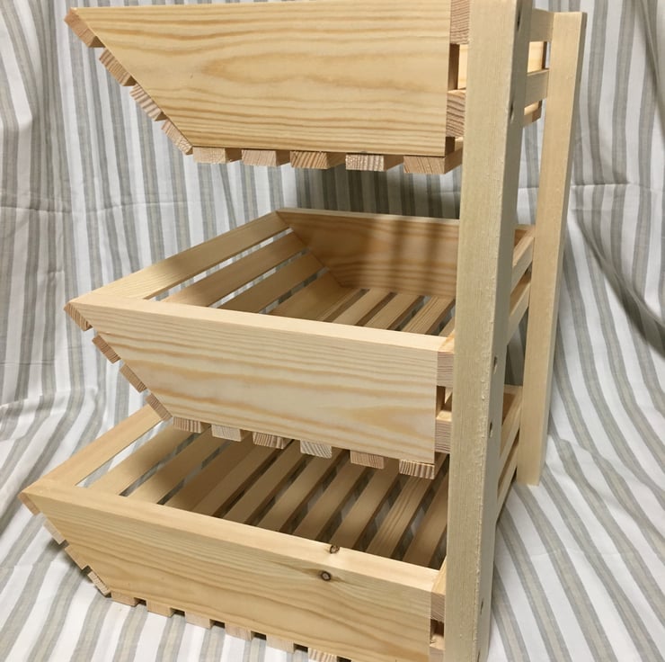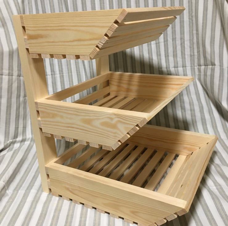Handmade 3 tier vegetable storage rack made from new pine timber stands 40cm tall 31cm wide 34cm deep look stunning