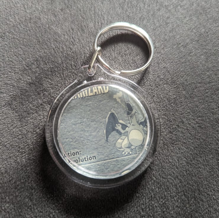 Handmade charizard keyring cut and made from 1999 artbox pokemon collectable sticker.