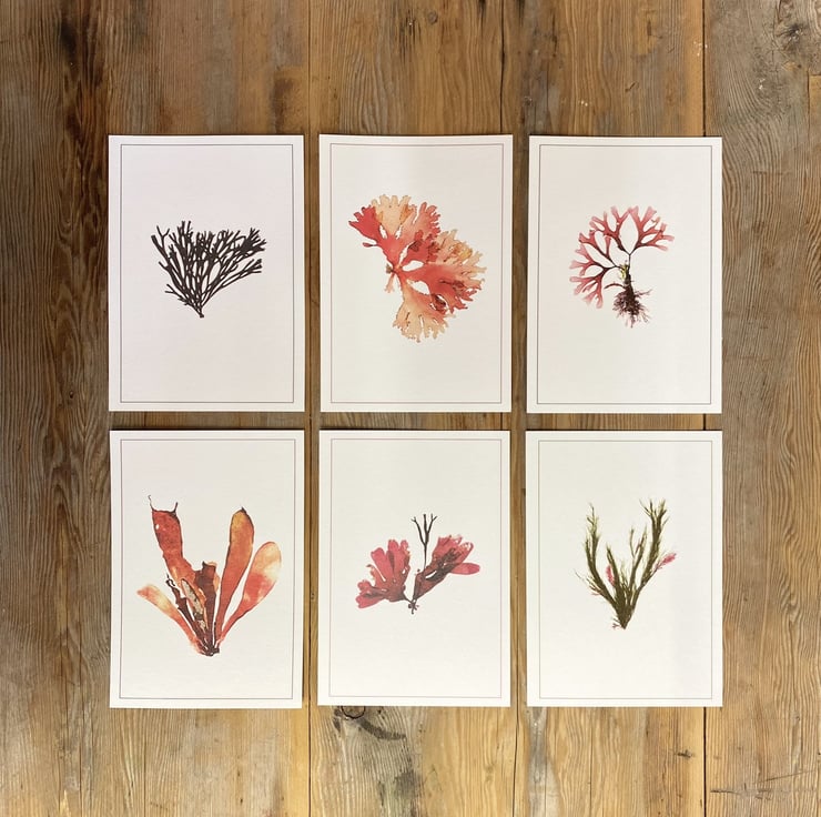 Featuring six different print reproductions of original seaweed pressings, collected responsibly from Trearddur Bay, Anglesey. These A6 cards are annotated on the reverse with the species of seaweed and the location it was found, with plenty of space left for your choice of message.