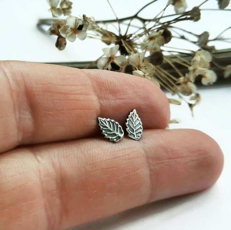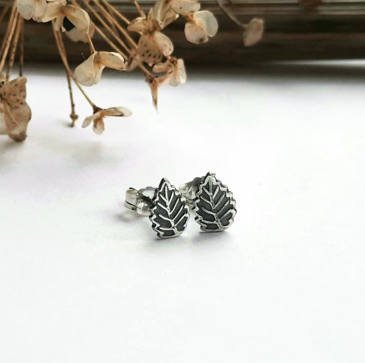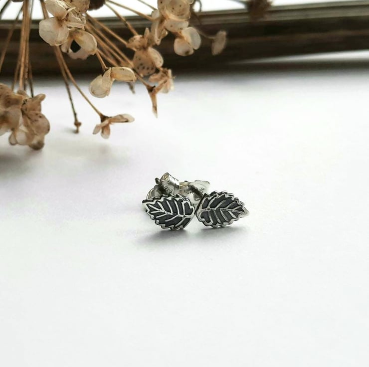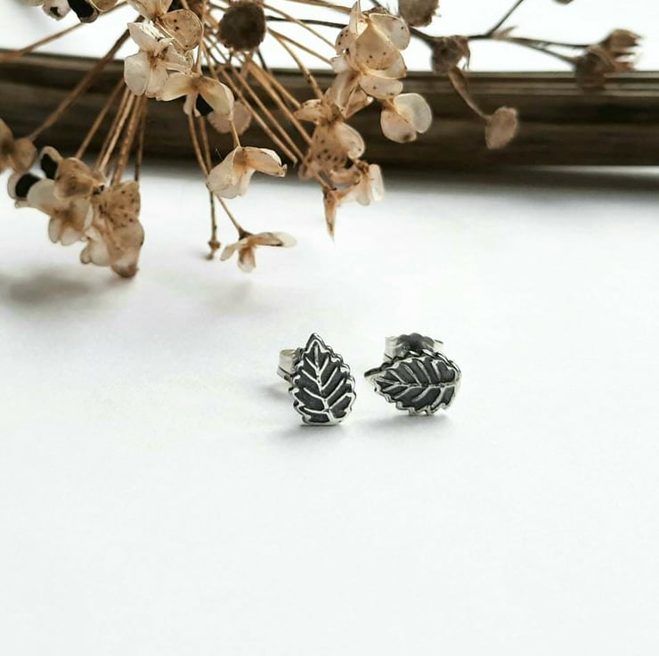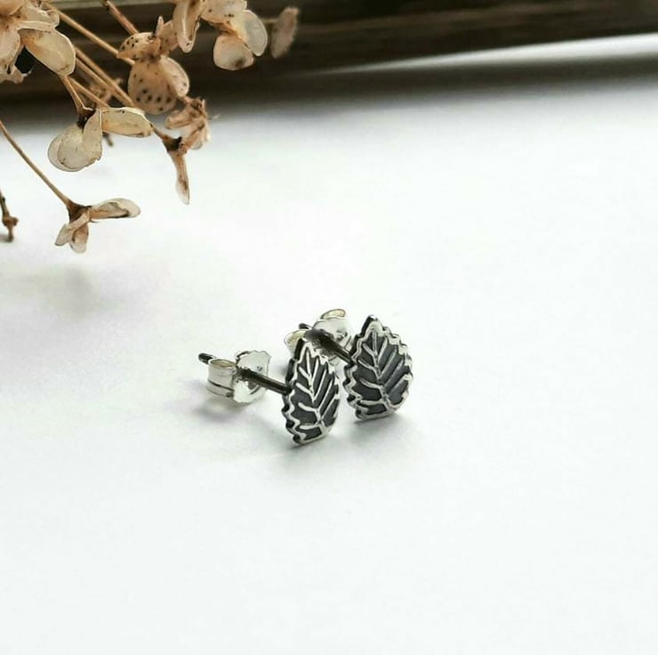 Pretty little sterling silver leaf stud earrings - perfect for boho nature lovers!