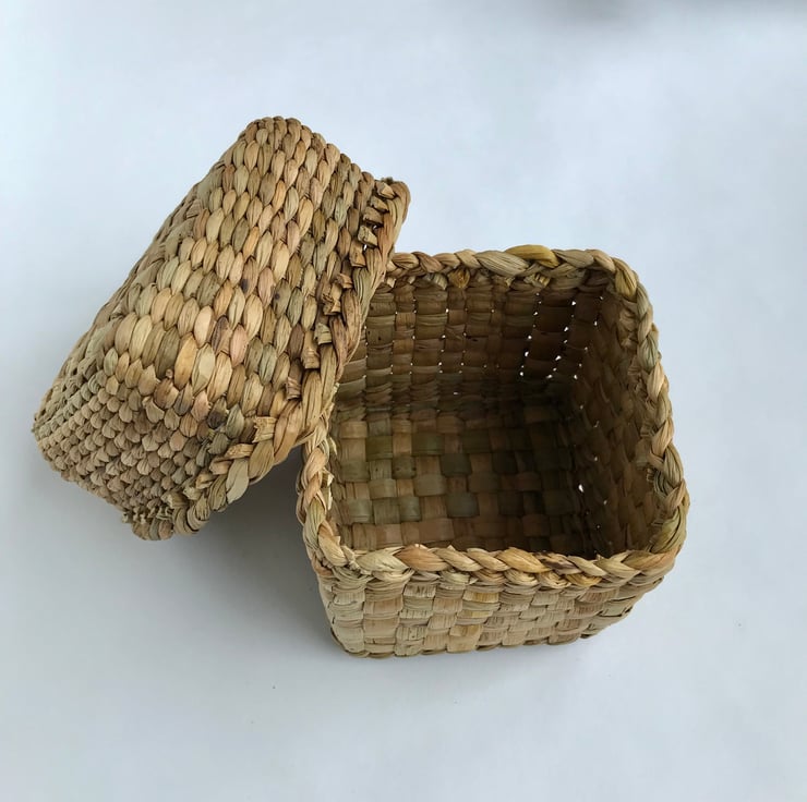 Woven from Common Club Rush which grows in low-lying areas of the country - eg Norfolk and the Somerset Levels - the latter being where I hand-harvest my own rushes alongside a team of fellow basketmakers from across the country. They are then dried in a barn in Devon and stored at my home in Cornwall, ready for weaving into beautiful items.