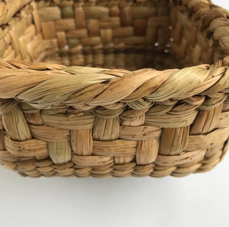 Woven from Common Club Rush which grows in low-lying areas of the country - eg Norfolk and the Somerset Levels - the latter being where I hand-harvest my own rushes alongside a team of fellow basketmakers from across the country. They are then dried in a barn in Devon and stored at my home in Cornwall, ready for weaving into beautiful items.