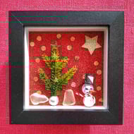 The white box frame is 37 cm square and 6 cm deep. It can stand on a shelf or be hung on the wall.