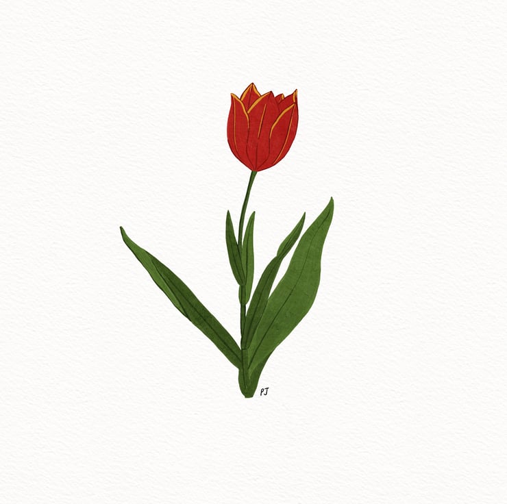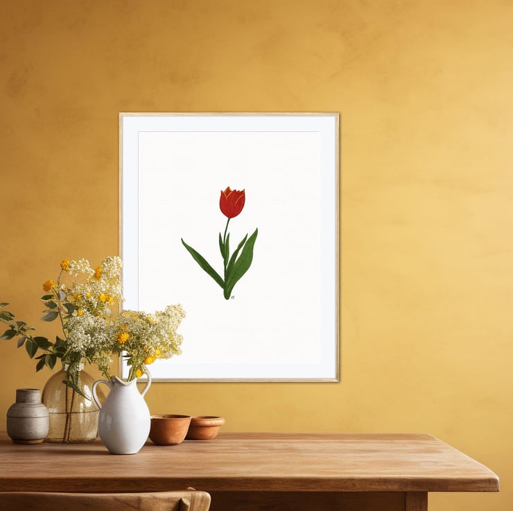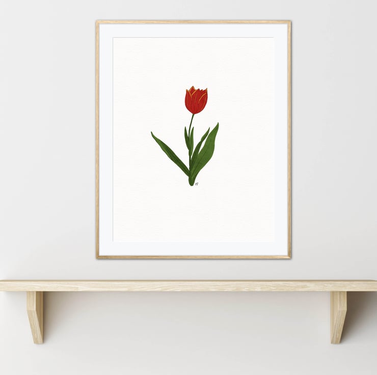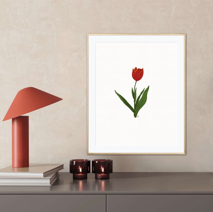 This art print is a print of my original botanical illustration of a single Red Tulip.