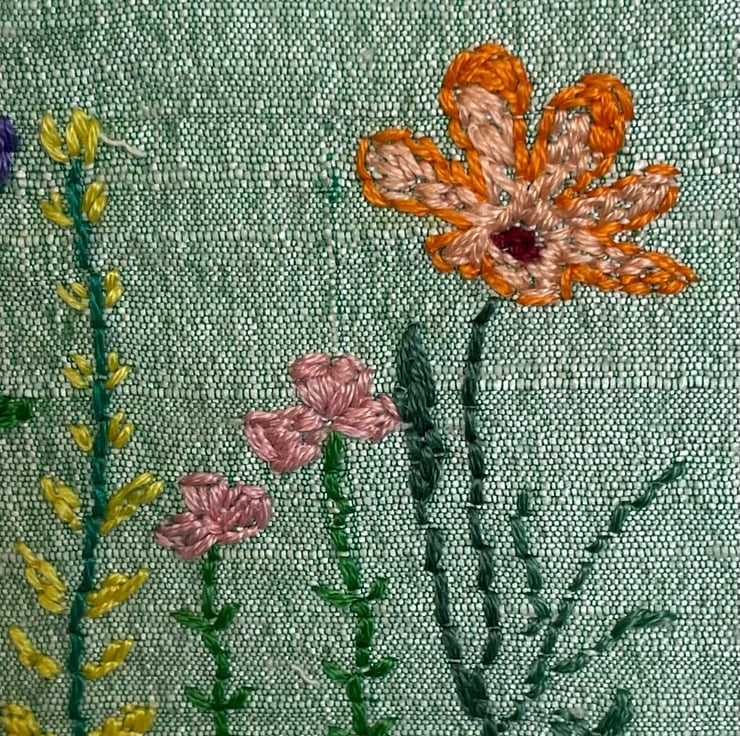 My floral embroidery pieces are inspired by our Devon garden but the colours and textures come from my imagination as I stitch.