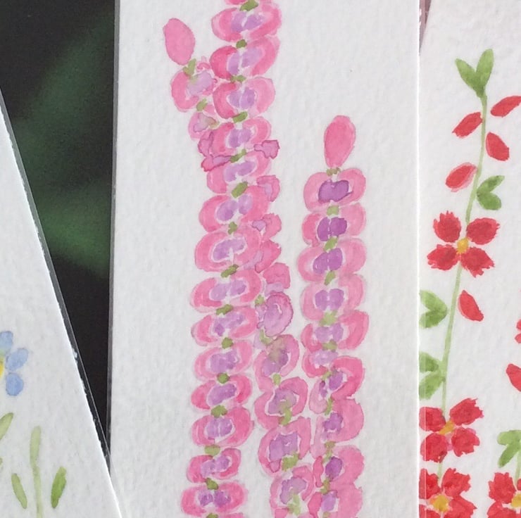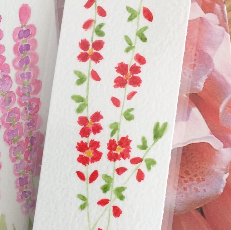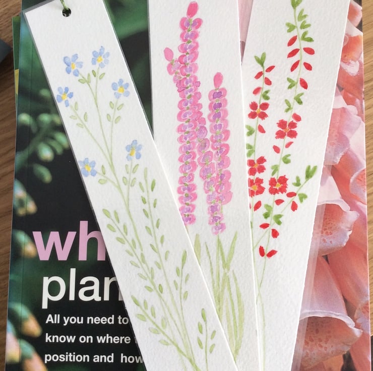 This bundle of 3 floral inspired bookmarks have been hand painted in watercolours on watercolour paper and laminated to give them protection.