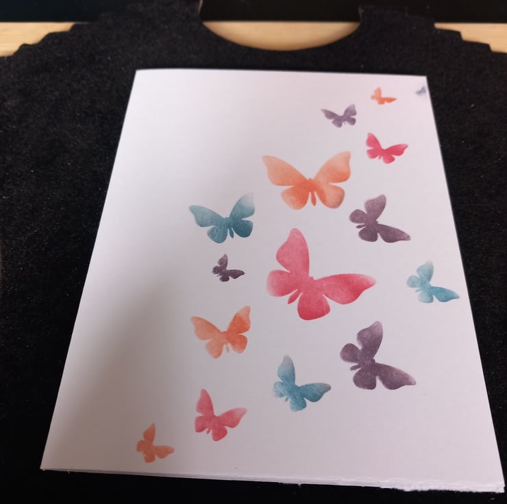 This is a set of 10 blank notelet cards. Each card has either butterflies or dragonflies inked on the surface and each card measures approximately 4 x 5.5 inches and comes with matching envelope.