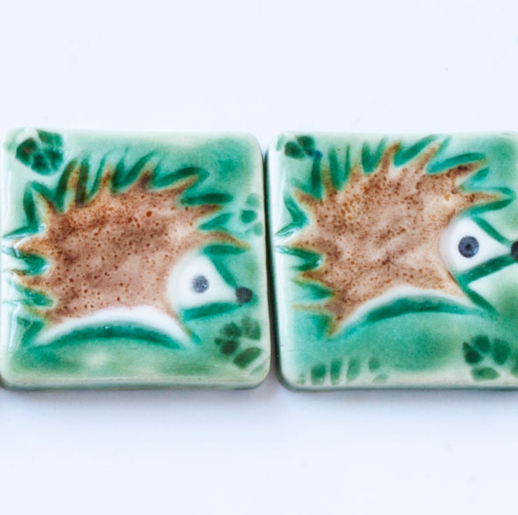 Created by hand using rolled slab and custom made stamps, these cute animal tiles are versatile and fun!