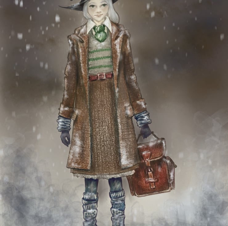 Winter Witch 'Linnet' Illustration - drawn traditionally with pencils and finished digitally on procreate.