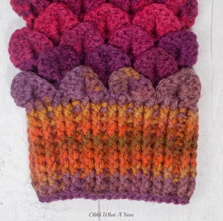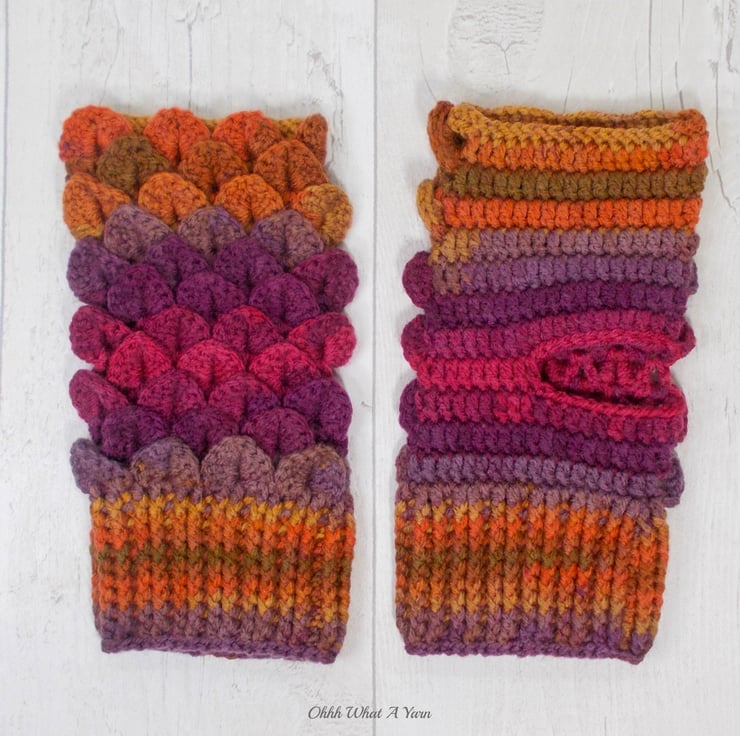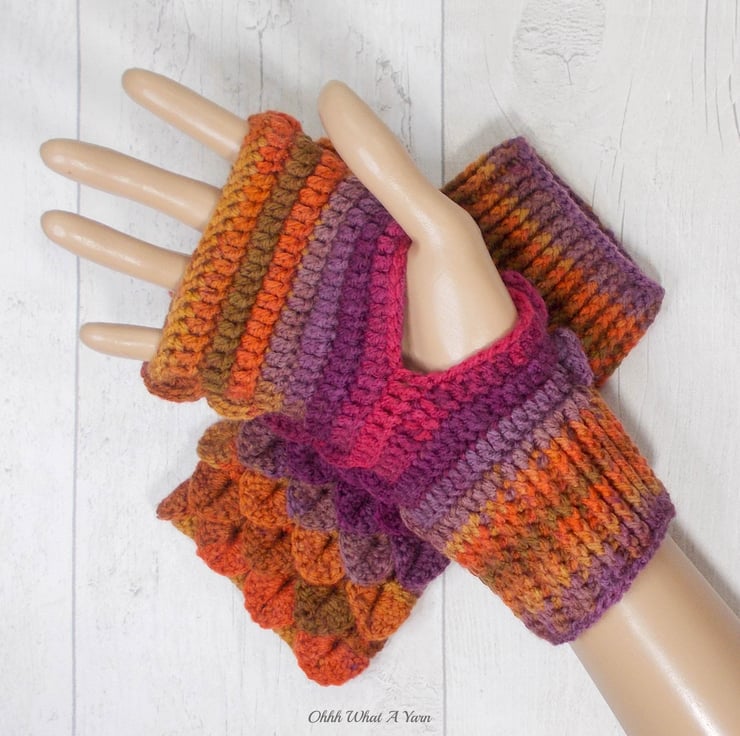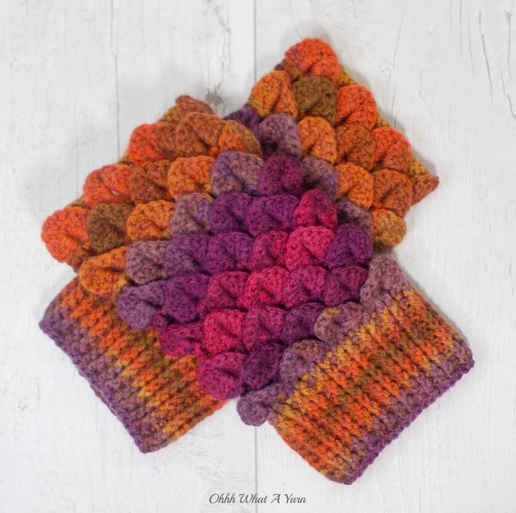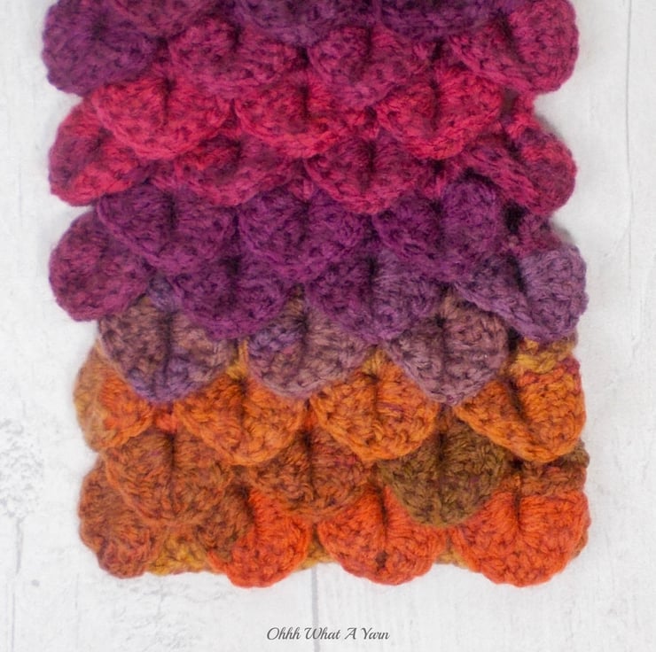 I adore all the gorgeous colour changing yarns and they are shown off perfectly with the crochet crocodile stitch.