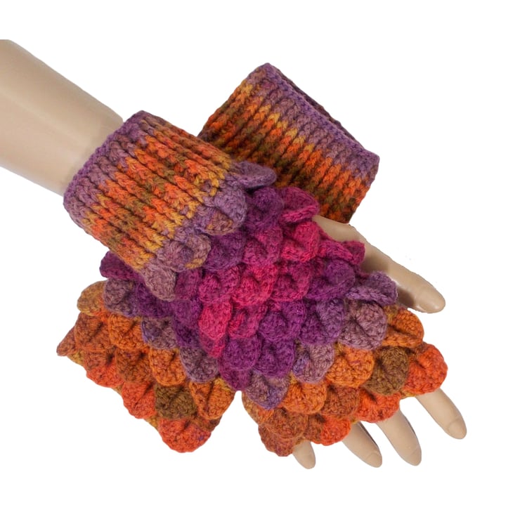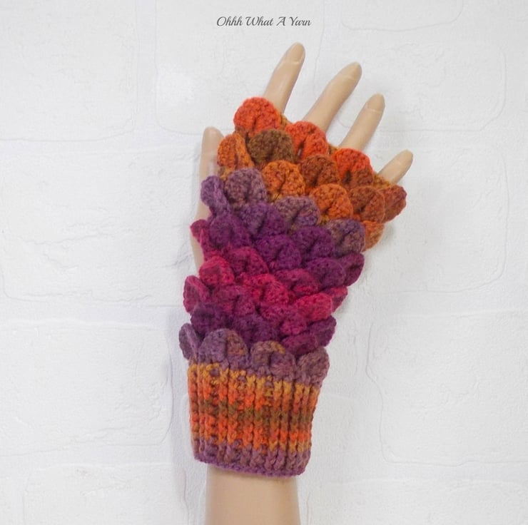 These cosy ladies fingerless gloves have been crocheted using a gorgeous colour changing yarn in beautiful shades of autumn. The yarn is 100% acrylic.
