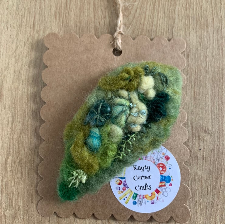 Made from British wool this lichen inspired leaf brooch in greens is perfect for adding a bit of colour to a coat, scarf, wrap or scarf.