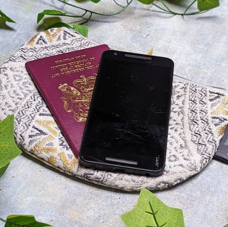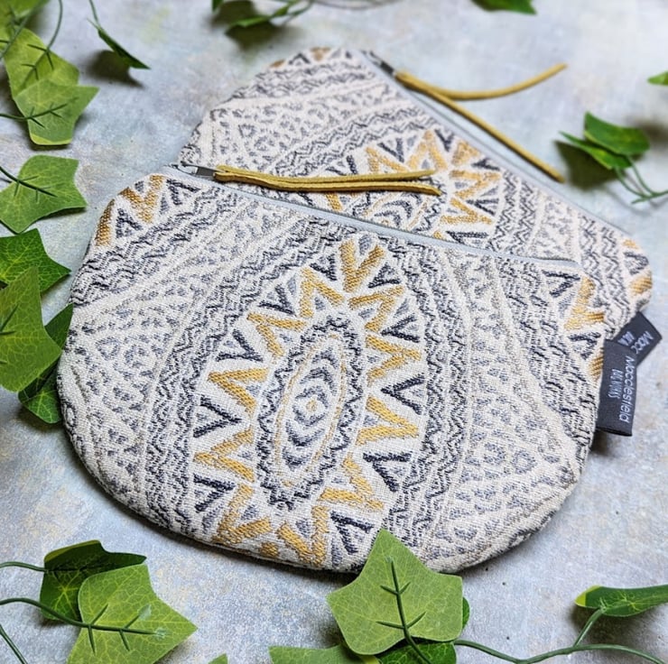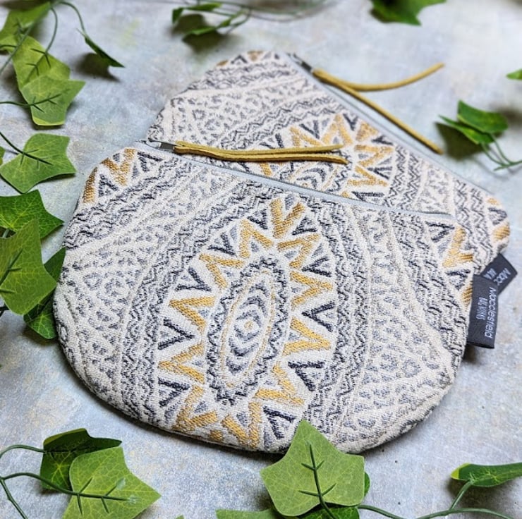 Reduced in price as end of line. A stylish pouch purse or make-up bag or pencil case made by using fabric off-cuts from larger projects.